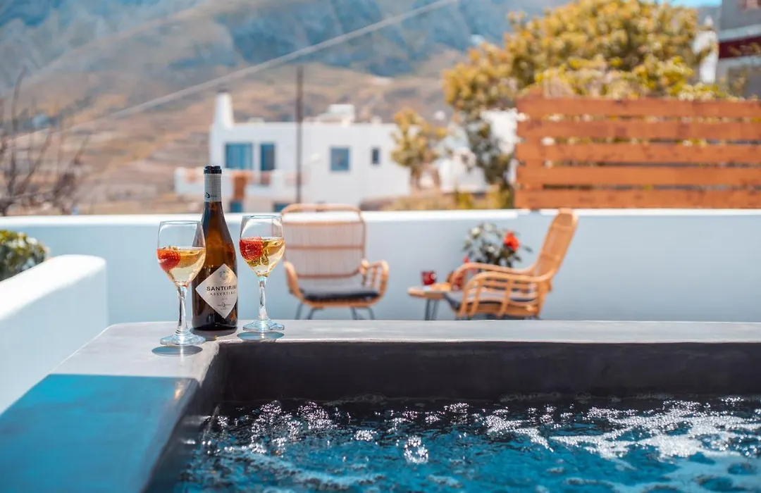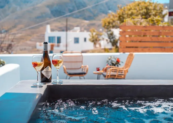 Oud-Thira is op 3 km afstand gesitueerd. De nabijgelegen culturele bezienswaardigheden zijn onder andere het Wijnmuseum Koutsoyannopoulos, dat op op maar 1 km hier vandaan ligt. Blue Soul Luxury Villa is tegenover het Agios Charalambos gelegen.